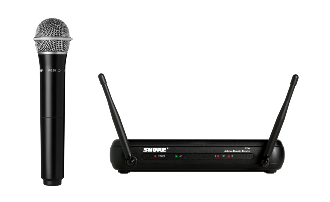包括SVX88雙通道分集接收機,2個帶PG28話筒頭的手持發(fā)射機